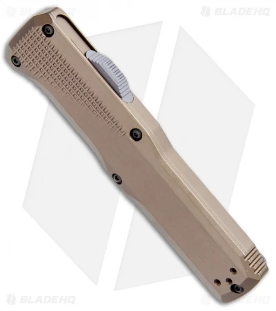 This 4600DLC-1 Phaeton OTF model is outfitted with a flat dark earth anodized handle and a black DLC coated blade made from S30V steel. The Benchmade Phaeton successfully combines speed and style in a sleek tactical everyday carry automatic. It has a spine-fire sliding button that offers quick blade access when deployment time is critical. The sturdy handle is made from a billet of 6061-T6 aluminum with a flat dark earth anodized finish. Subtle texturing along the top scale improves grip on the smooth handle without being abrasive. A reversible deep-carry pocket clip completes the tactical EDC design.
