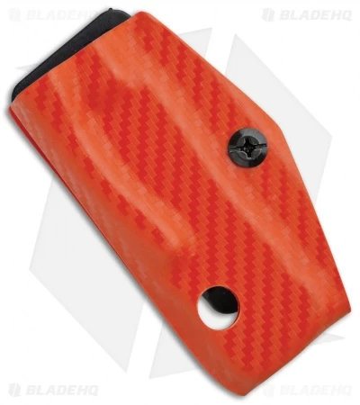This Clip & Carry sheath was made to fit the Leatherman Skeletool. This model is made from orange carbon fiber print kydex.