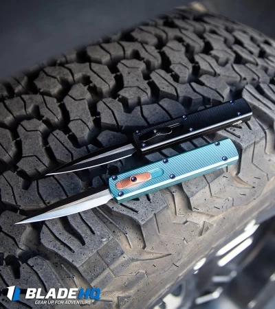 Add a sleek and compact OTF auto to your rotation with the Zulu Spear from D Rocket Designs. This model sports a textured black aluminum handle with blue hardware and a black finished dagger blade. It offers powerful double-action deployment with a front loaded thumb slide. The unique handle texture provides a sure grip in hand for secure use. Produced by D Rocket Designs.