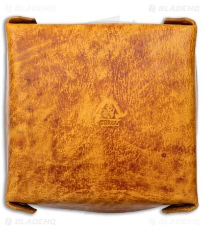 This Fire Hall Knife leather tray is the perfect storage device for keys, jewelry, knives and other tools used everyday. Not only is it useful, but it is also stylish and handmade. The leather ages well and it is easy to pack. All you have to do to pack it is undo the corners and lay it flat. Then, when you are ready to use it again, snap the corners together again. After that, the dark tan leather valet tray is ready to hold your precious items again. It’s that easy!