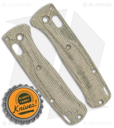 Add a custom touch to your Benchmade Mini Bugout knife with these canvas micarta “Crossfade” scales from Flytanium. These aftermarket custom milled handles are a perfect fit to replace the standard Bugout scales. The scales have a visually pleasing milling pattern that also gives the knife superb grip.