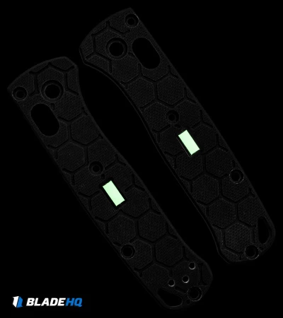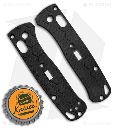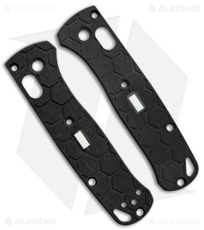 - Black G-10 replacement scales for the Benchmade Mini Bugout.