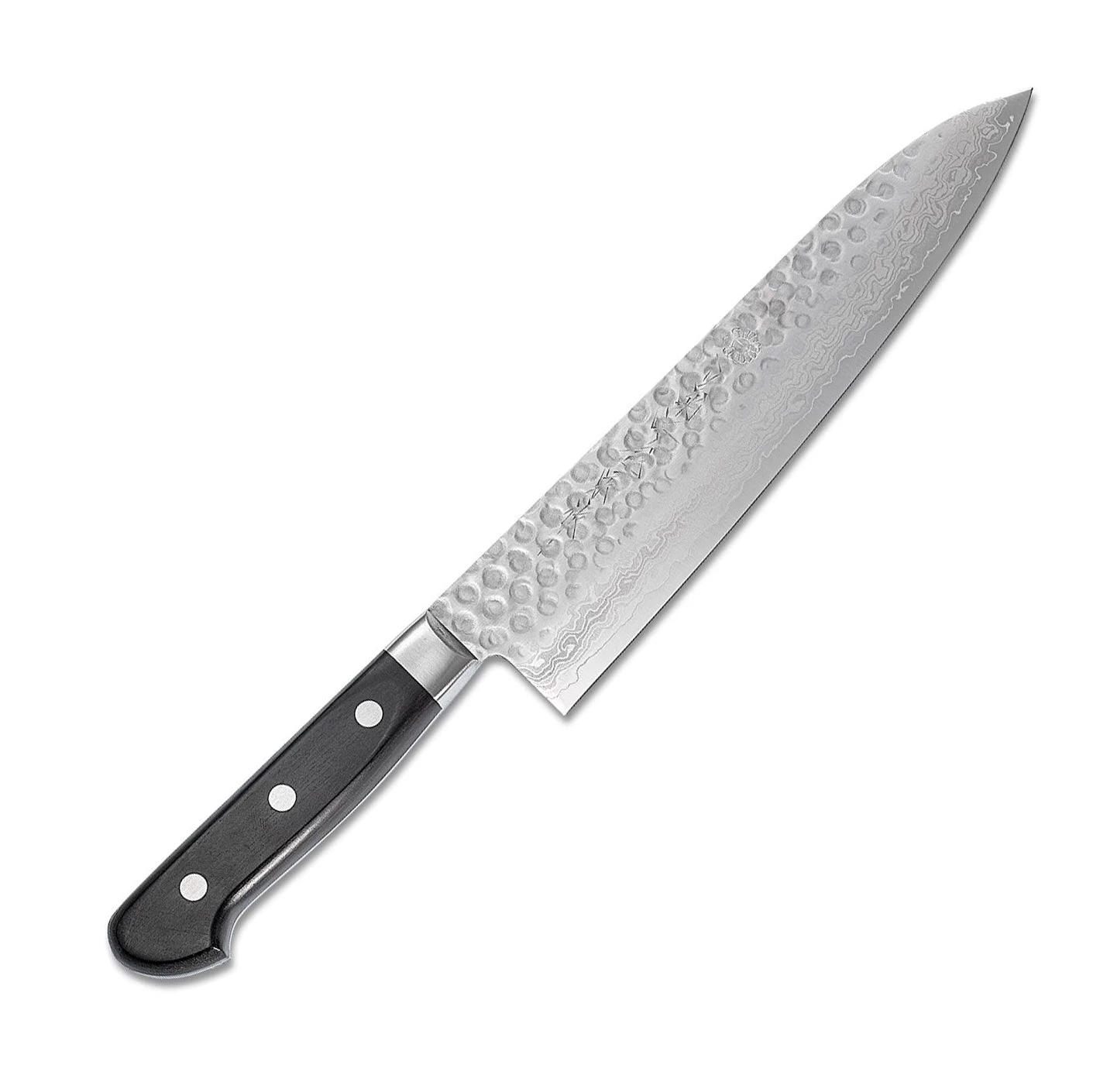 Kikuichi 9.5″ Hammered Finish Chef’s KnifeThis Kikuichi Chef’s Knife has a 9.5″ blade which has a carbon steel core and eight layers of stainless steel. Its hammered finish is both attractive and prevents food from sticking. This knife also has an attractive rosewood handle. 9.5″ blade High carbon steel core 8 layer stainless steel Hammered finish Rosewood handle – WGAD24-9-5sp – 1 – B141-1