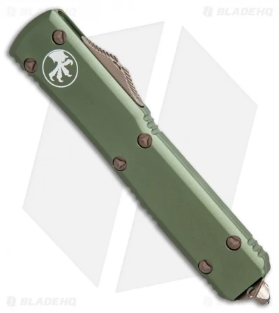 This Ultratech features a drop point blade with a bronzed finish and a plain cutting edge. It has a contoured, OD green anodized 6061-T6 aluminum handle with a bronze finished pocket clip, glass breaker, and stainless steel hardware.