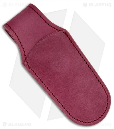 Looking for a slick and sophisticated method of carrying your pocket knife? This burgundy leather sheath from MKM is made from genuine leather and features a magnetic attachment system for belt carry or in-pocket carry. It fits most small folding knifes.