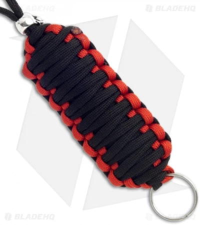 Red & Black 550 paracord tied lanyard fob with skull bead and split ring. This lanyard has many uses, it can be used as a neck lanyard for your badge or with a neck knife, and some will find it useful to attach to bags and packs as survival gear. The paracord fob is triple cobra tied, 1-1/2″ wide and 4-1/2″ long, with approximately 12-15 feet of paracord. The neck line length is 24 inches and total weight is 1.2 ounces.