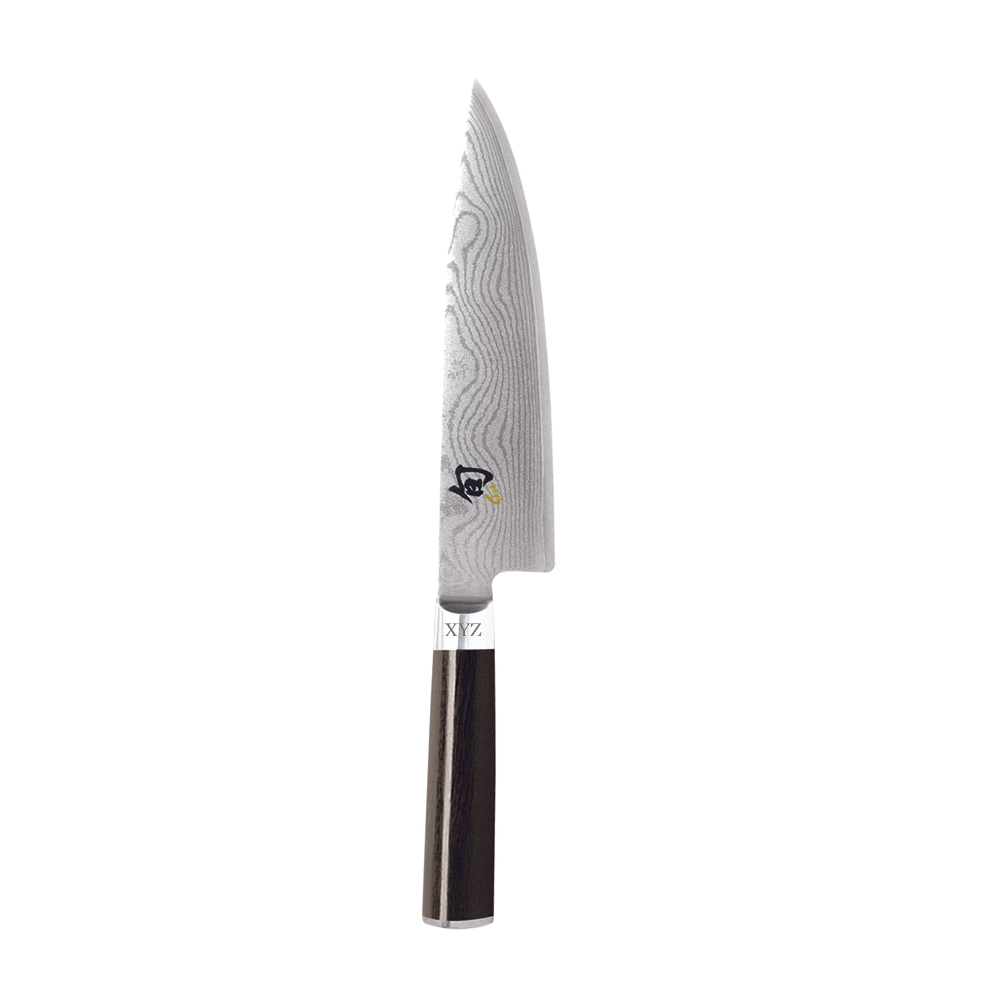 If there is one knife that you simply can’t be without, it’s this one. The Shun Classic 8-inch Chef’s Knife is an all-purpose blade ideal for a wide variety of cutting tasks. The eight-inch length is perfect for slicing, dicing, and chopping small to medium-sized fruits, vegetables, and other foods. The wide blade keeps knuckles off the cutting board and is extra handy when transferring cut food from board to pan. With its curved belly, the Chef’s knife can be gently “rocked” through fresh herbs or spices to produce a very fine mince. Shun Classic’s thinner blades makes it lighter and less tiring to use than comparable European-style Chef’s knives. The Shun Classic 8-in. Chef’s Knife is part of the Shun Classic line of tasteful and contemporary cutlery. The Shun Classic line features beautiful Damascus-clad blades and D-shaped ebony PakkaWood® handles. Yet behind these handcrafted knives’ beauty is function: razor-sharp blades offering top performance. Shun’s proprietary high-performance VG-MAX steel, which provides incredible edge retention, is clad with Damascus stainless steel, then ground and bead-blasted, revealing the flowing pattern of the layered steel. The result is a line of knives that are sharp, durable, and corrosion resistant, as well as beautiful to behold. The Shun Classic line also offers you the widest assortment of both traditional culinary blade shapes and cutting-edge designs, so you can always find the right knife for the task.