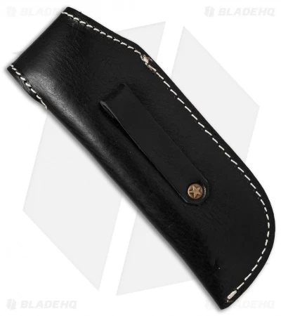 This Venture Sheath features a rugged leather design that will look great with any fixed blade knife. It’s made from black leather with white stitching and an embossed brown leather overlay. This model measures approximately 7.5″ by 2.5″ for larger sized blades. Includes a leather belt loop and a button clasp. Protect your favorite blades in style with a Venture leather sheath.