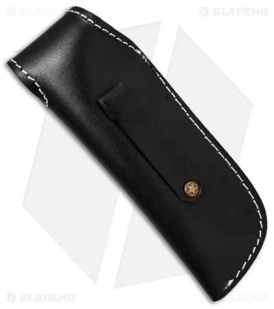 This Venture Sheath features a rugged leather design that will look great with any fixed blade knife. It’s made from black leather with white stitching and an embossed purple overlay. This model measures approximately 7.5″ by 2.5″ for larger sized blades. Includes a leather belt loop and a button clasp. Protect your favorite blades in style with a Venture leather sheath.