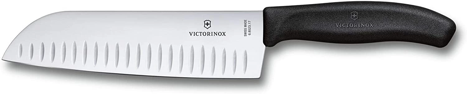 Swiss made Santoku knife with fluted edge
