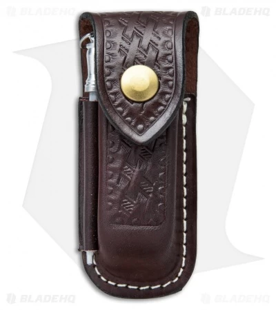 This Large Victorinox sheath is made from embossed brown leather with a belt loop strap. It was designed to fit the Altimeter, Angler, Climber, Cyber Tool 29, Deluxe Tinker, Explorer, Explorer Plus, Fieldmaster, Fisherman, Huntsman, Huntsman Plus, Mechanic, Mountaineer, Spartan Lite, Super Tinker, Timekeeper, Voyager, and Traveller. Item comes with mini sharpening steel.